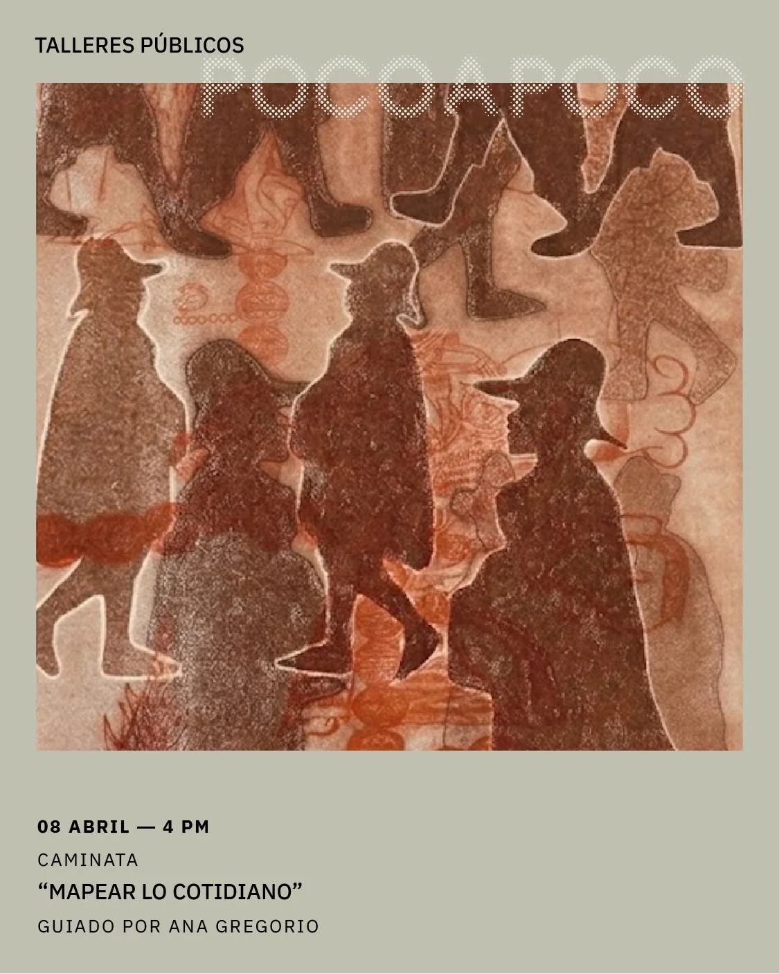 Este taller nos propone un acercamiento al territorio desde la experiencia directa. Inicia con una caminata breve para registrar el entorno mediante notas, imágenes o recolección de fragmentos. Posteriormente, cada participante elaborará una cartografía personal usando distintas técnicas gráficas, traduciendo la experiencia en un mapa que vincula cuerpo, memoria y espacio.