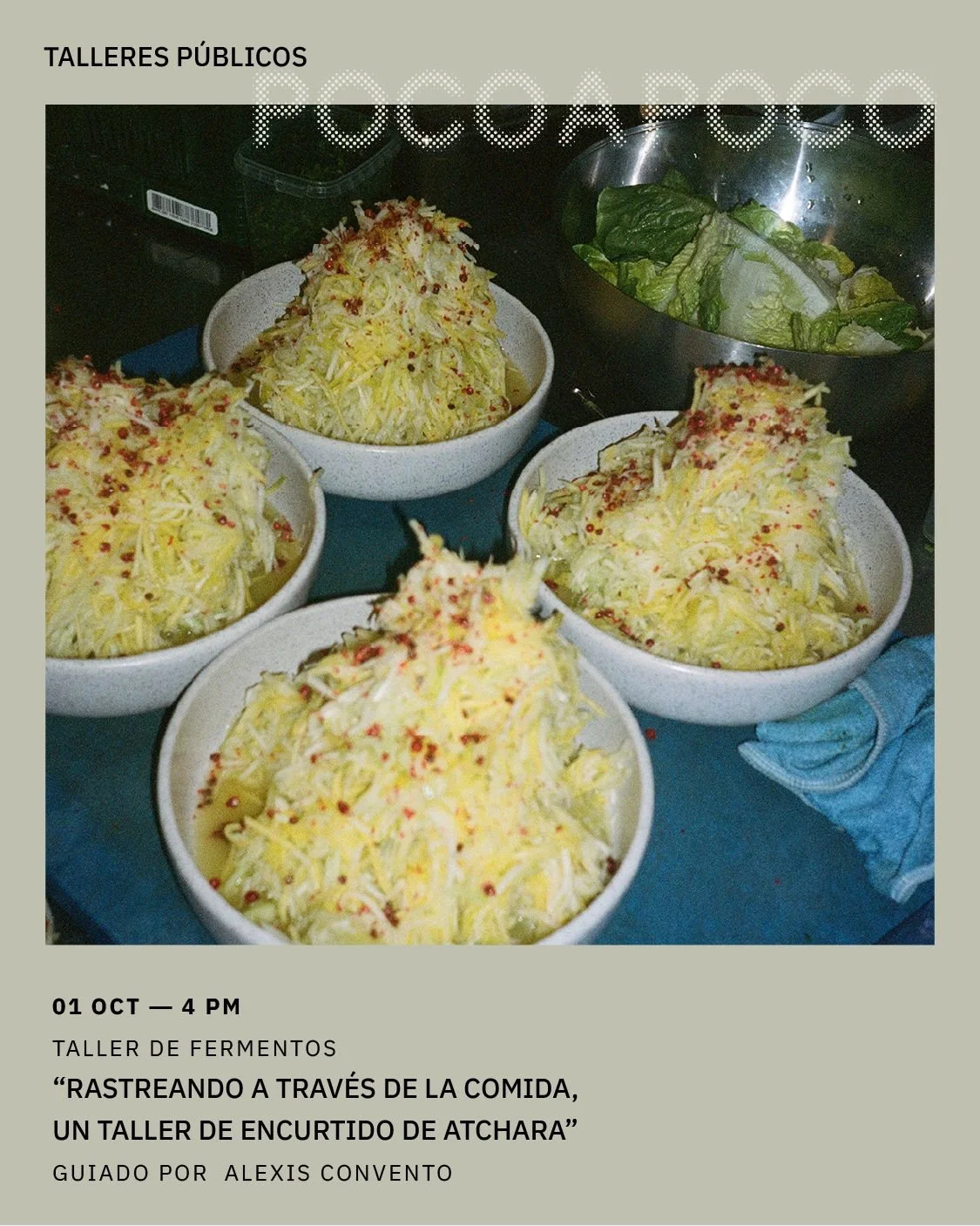 In this pickling workshop we will prepare atchara, a Filipino condiment made with ingredients shared between the Philippines and Mexico through the Manila Galleon, such as jicama and chayote. As we enjoy it together, we will explore how food traditions, family recipes, and personal memories intertwine to create a collective sense of belonging.
