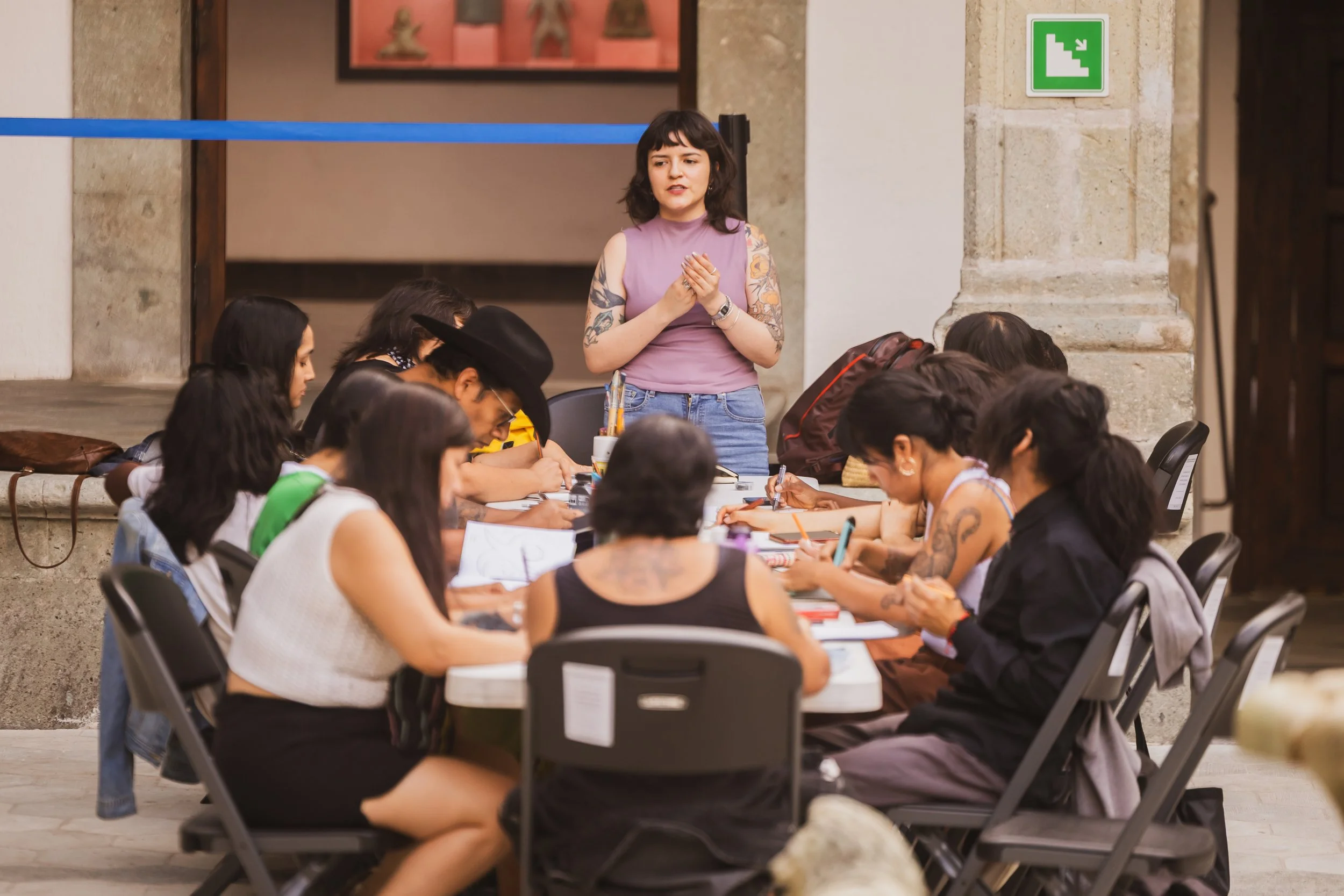 This workshop combines observation and memory through a self-guided visit to the Rufino Tamayo Museum of Pre-Hispanic Art in Mexico. Each participant toured the museum and, at the end, created a drawing based solely on memory, capturing the essential features of the artworks.